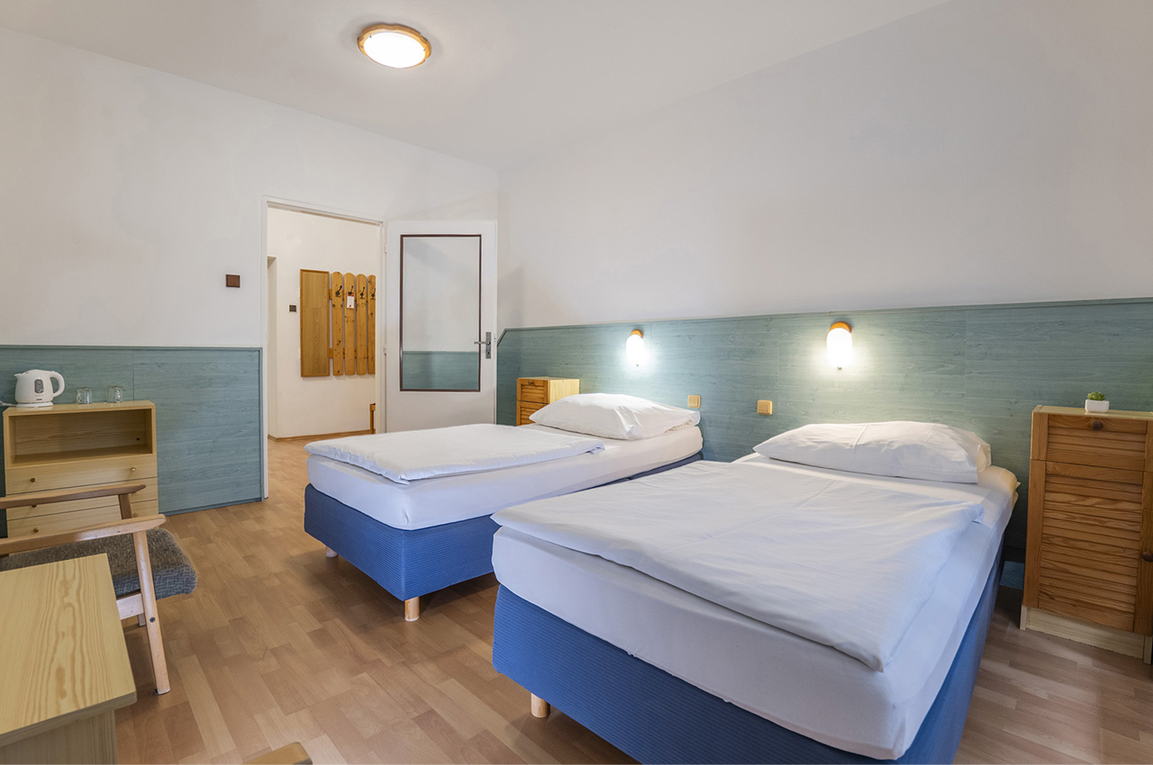 Ubytování nabízíme se snídaní i bez stravy. Pro skupiny je možné zajistit polopenzi nebo plnou penzi. Hostům je k dispozici vlastní parkoviště, malá posilovna, herna a sauna.